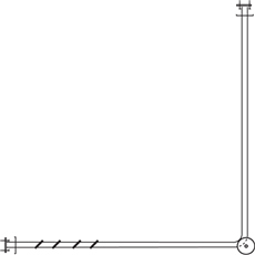 This curtain rod kit for a corner shower is 1" in diameter with a polished stainless steel finish. Mounting flanges are welded and concealed with snap-on covers. A "J-hook" is provided with ceiling flange to adjust height at front corner.