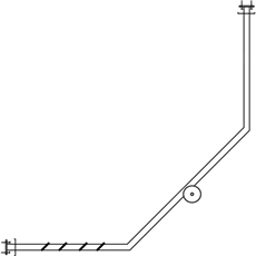 This curtain rod kit for a neo-angle corner shower is 1" in diameter with a polished stainless steel finish. Mounting flanges are welded and concealed with snap-on covers. A "J-hook" is provided with ceiling flange to adjust height at front corner.